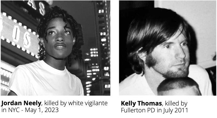 The people in power have no regard for the lives and the humanity of those who sleep on the streets and in the shelters. We need to look no further than the 2011 killing of Kelly Thomas in Fullerton, CA, where two police officers brutally beat a homeless man until he was unrecognizable, refusing to stop even as he cried for help. Despite outcry and protests, the officers never faced justice. Or in May 2023, when Marine Daniel Penny choked the Black homeless man Jordan Neely to death on a NYC subway car, even as onlookers pleaded with him to stop.