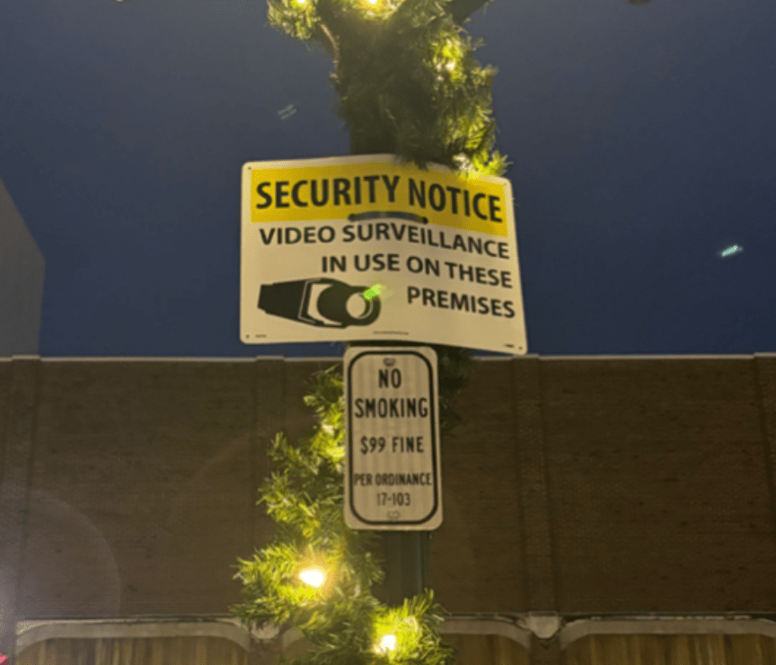 Downtown is covered in security cameras and signs that read “no smoking, $99 fine”