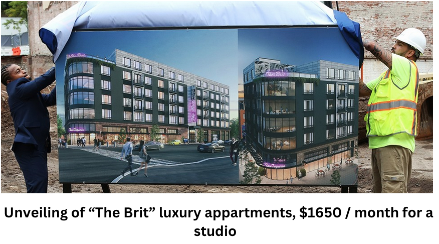 One of his three developments, the Brit Luxury Apartments, starts at an insane $1,650 for a studio (3), so it’s clear that this would be for 700 wealthy people. The Brit was announced Summer of 2021 and is being built where Burritt Bank used to be, a building that had certainly been devalued as it sat vacant since 1992. Besides this cheap real estate, in order to attract Avner Krohn along with other high end developers, millions of dollars have been spent since 2013 to make the downtown look prettier, what New Britain calls the “complete streets master plan.”