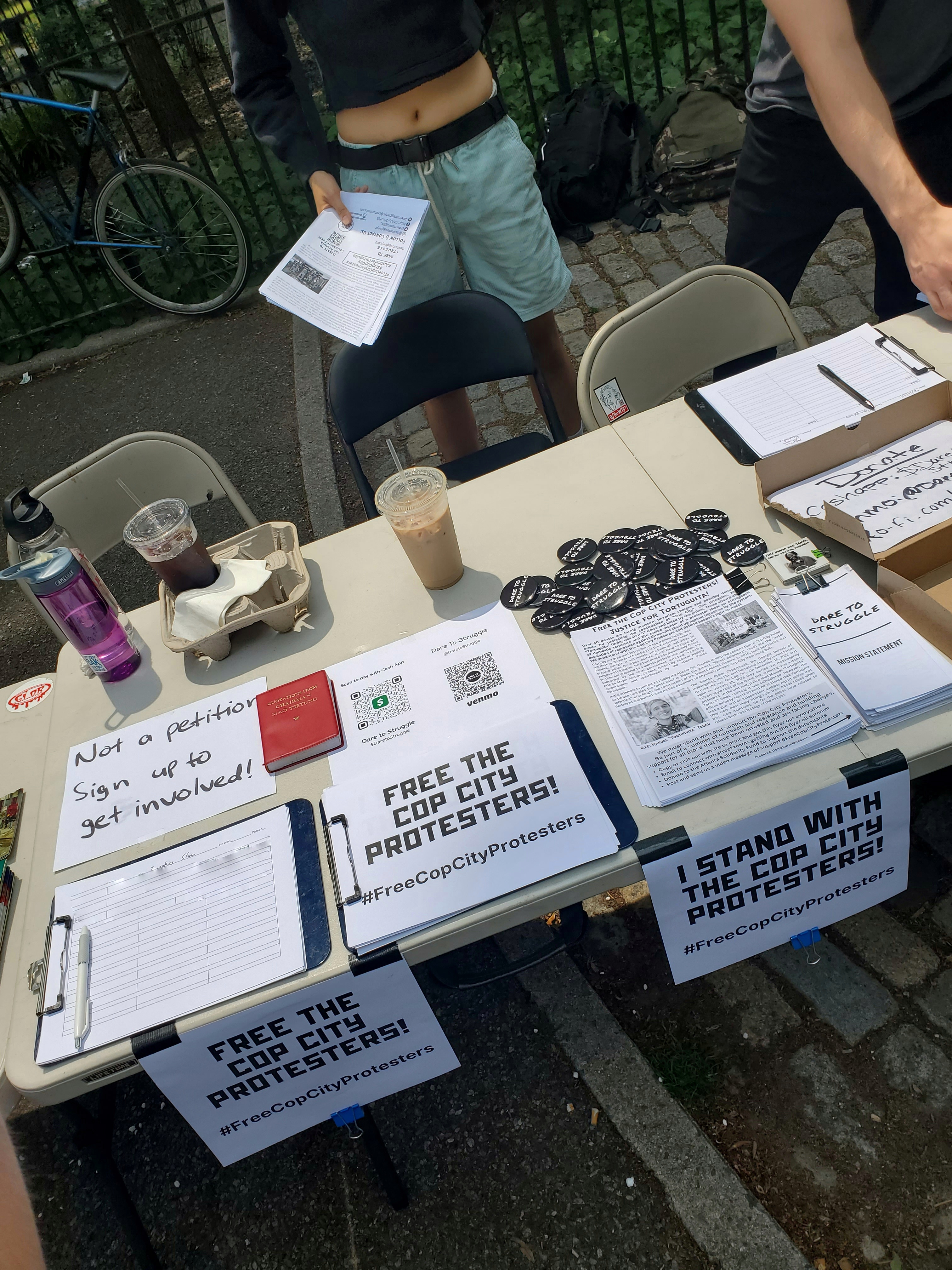 This “us and them” idea also misses the part where we emphasize going to the masses, which means getting off our screens and going out into the world. Practically speaking, how this looks is getting groups together to go on outings somewhere, at least once a week. We’ve developed several campaigns over time that have included a mix of hitting the same location week after week, or going out broadly to popularize a call to action. We are the nutty (but not too nutty) people on the street who bother strangers about Cop City or the genocide in Palestine or homelessness or police murders. We knock on doors in the projects to lay down how the government and private interests are getting rid of the people living in public housing. And we shout our heads off on trains and buses to get people going about their day to stop and think about the messed up society we live in.