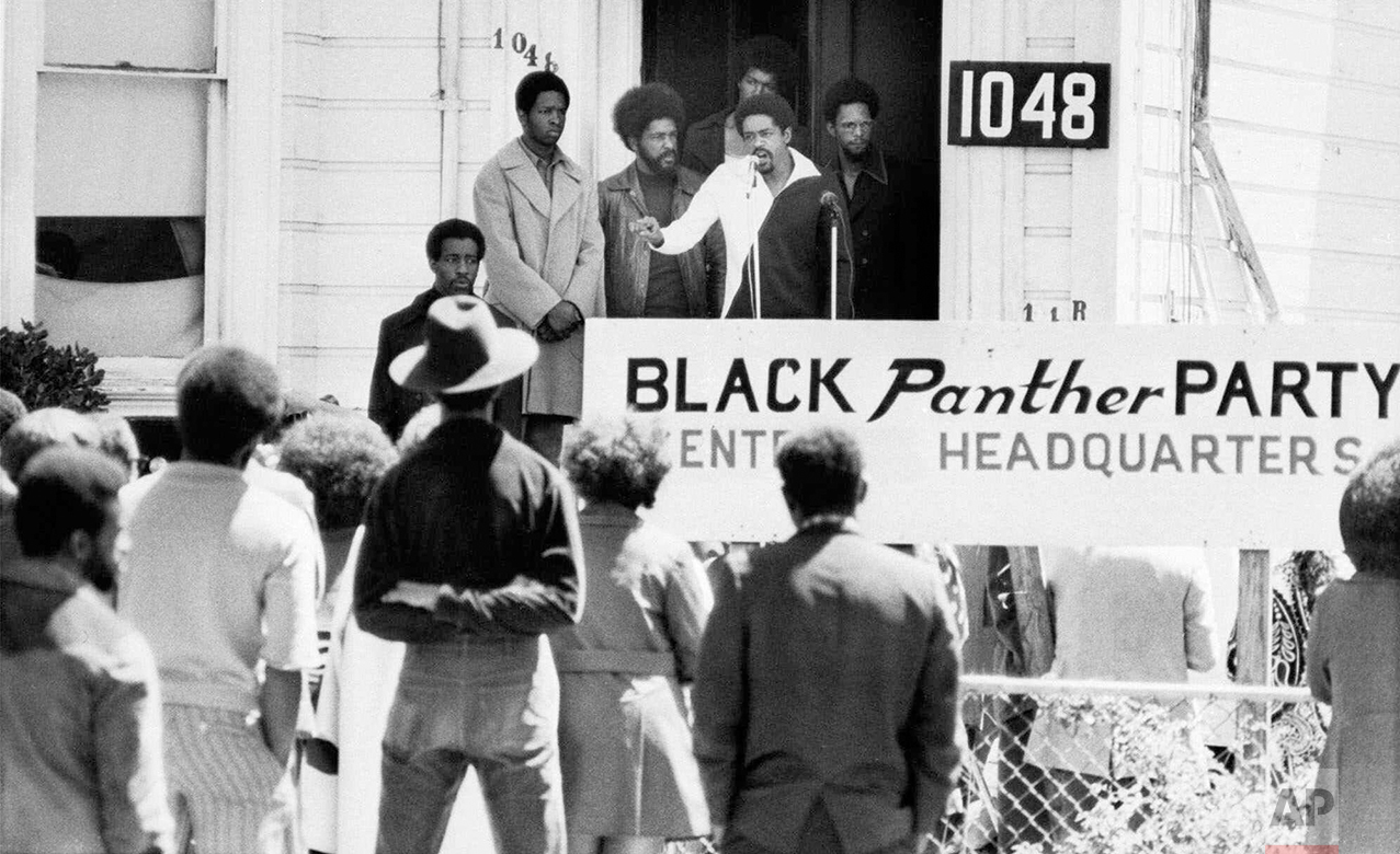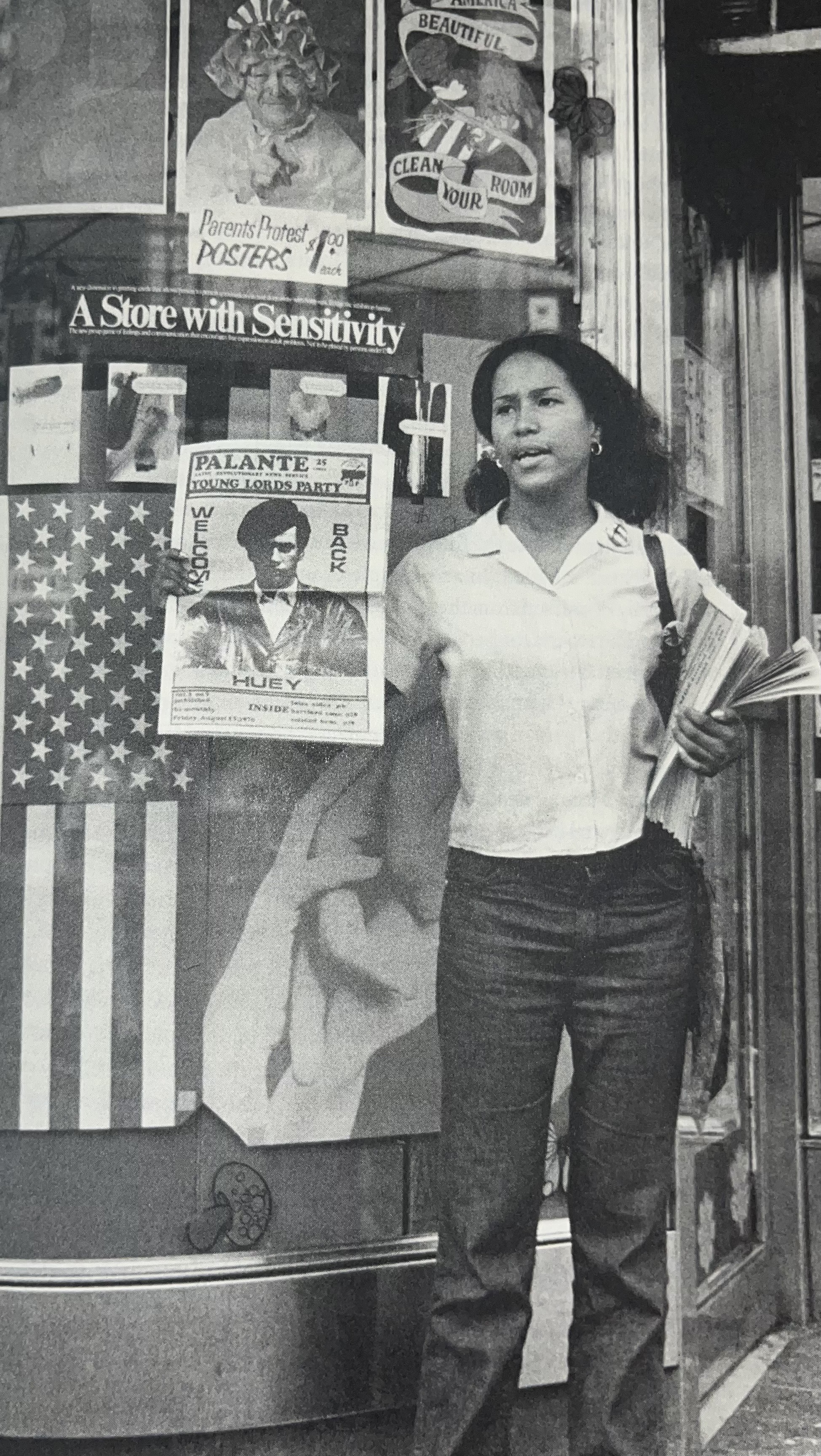 From left: Bobby Seale delivering a speech at the BPP’s Oakland headquarters; Young Lord Gloria Colón at the organization’s East Harlem office