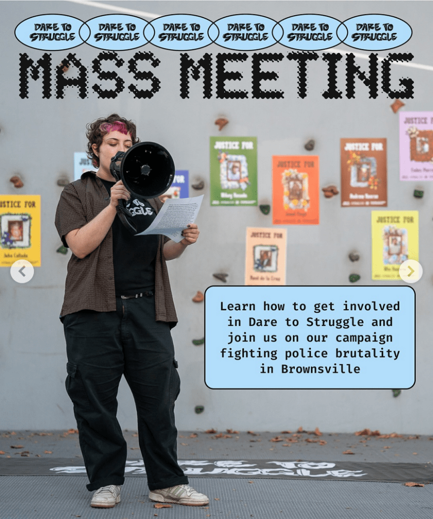 We’ll talk about how to get involved with Dare to Struggle, including in our campaigns against police brutality and the privatization of public housing in NYC.