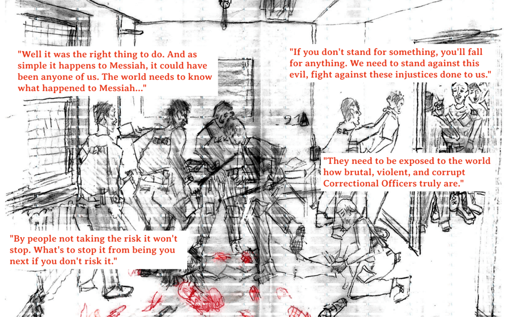 “Why is it an important risk? Because it needs to be stopped and fixed. It needs to be brought to the light how broken this corrupt system is. Anyone of us could be [Robert] Brooks or Messiah. They [Correctional Officers] think they’re above the law.”
