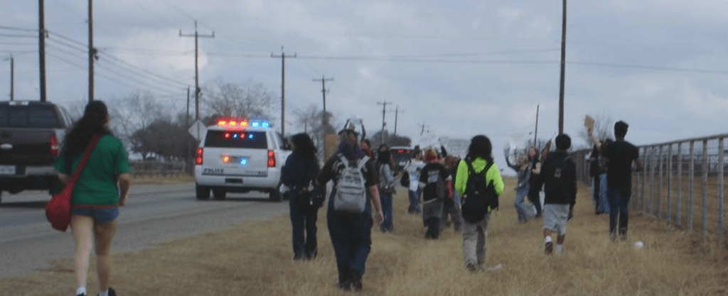If the school administrators repressed you for walking out, or if you’re a lawyer looking to stand with the people, hit us up. Come to the forum against political repression in Austin on February 28th. You do not have to go through this repression alone.
